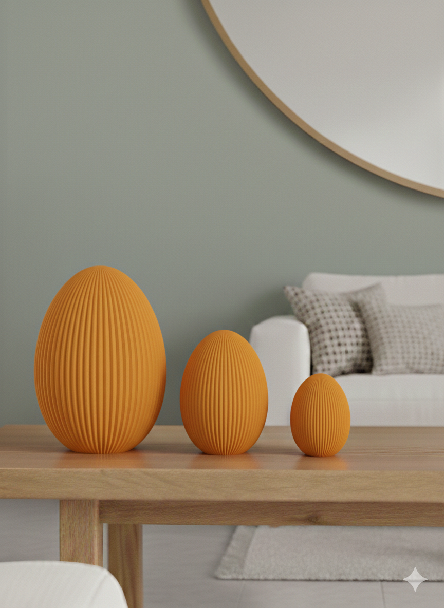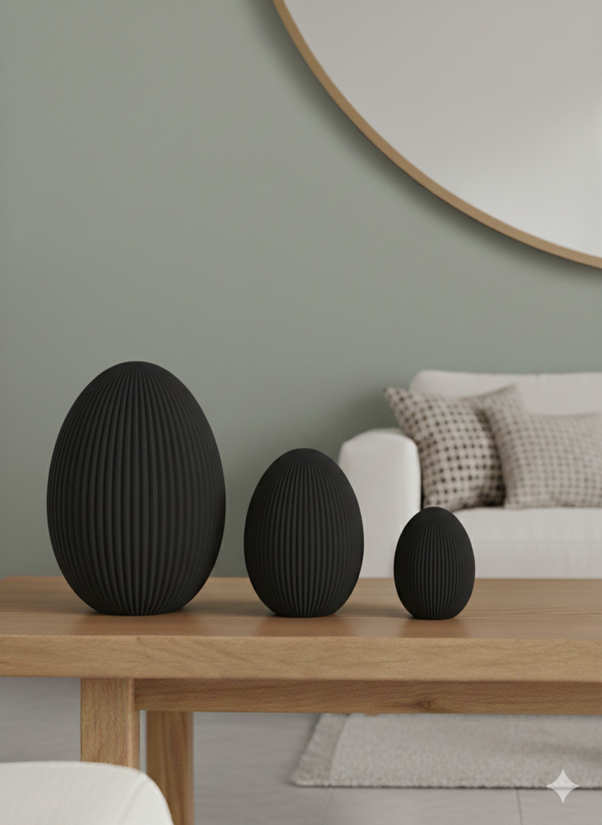 Elegant schlichtes Osterei im Japandi Style aus hochwertigem 3D-Druck-Material PLA mit charakteristischem, geradlinigem Design.